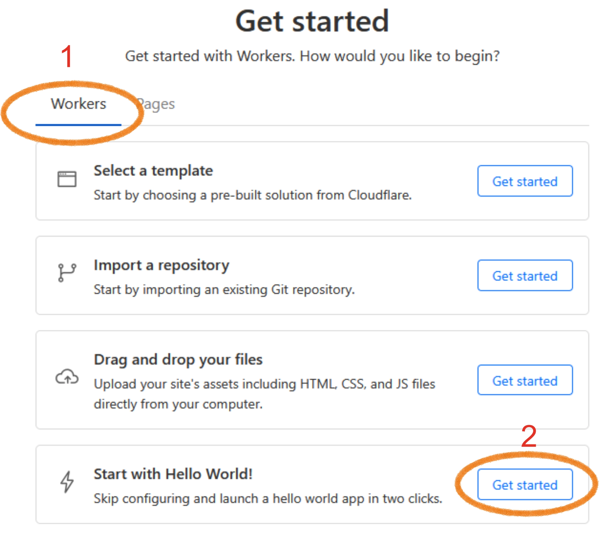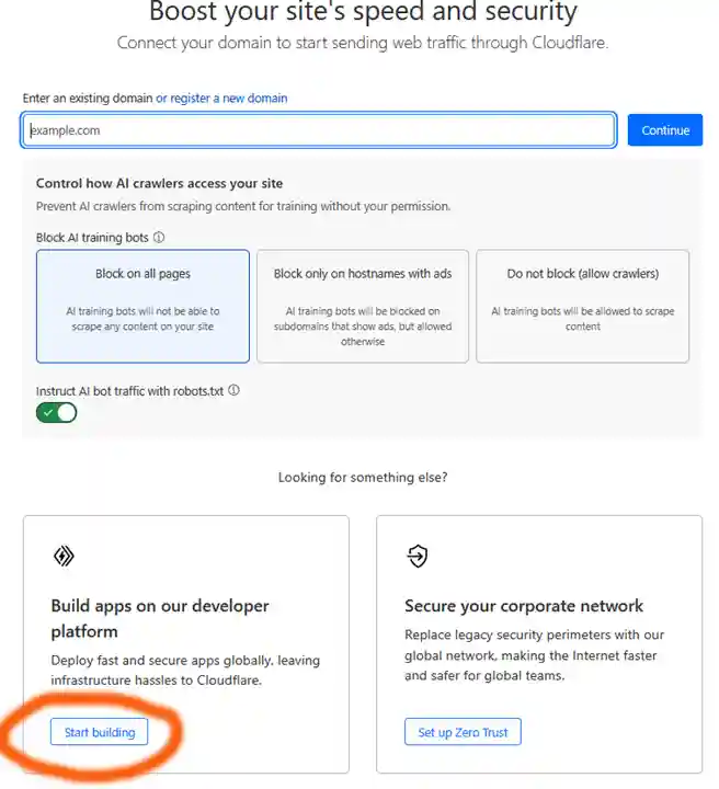 Select: Compute (Workers) -> Workers & Pages -> Click "Create application" button but this time we stay on the "Workers" tab: