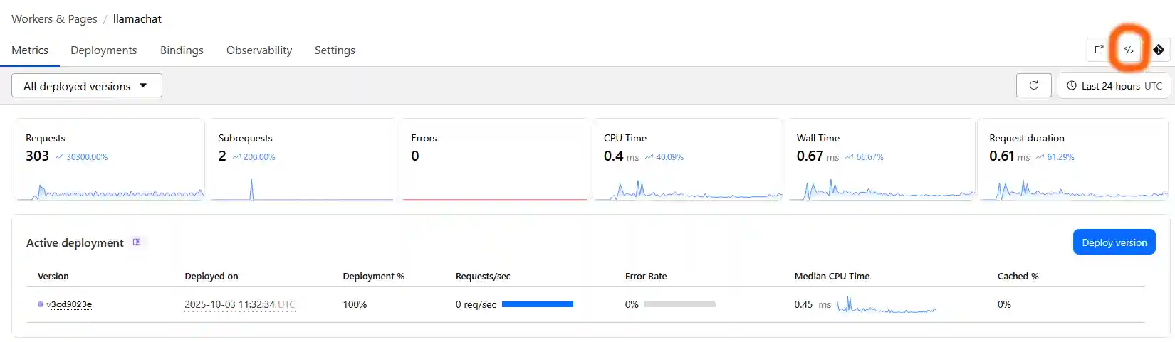 When you later would want to edit your worker code you can find the edit code button in the upper right corner of your worker page: