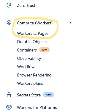 Select: Compute (Workers) -> Workers & Pages -> Click "Create application" button: